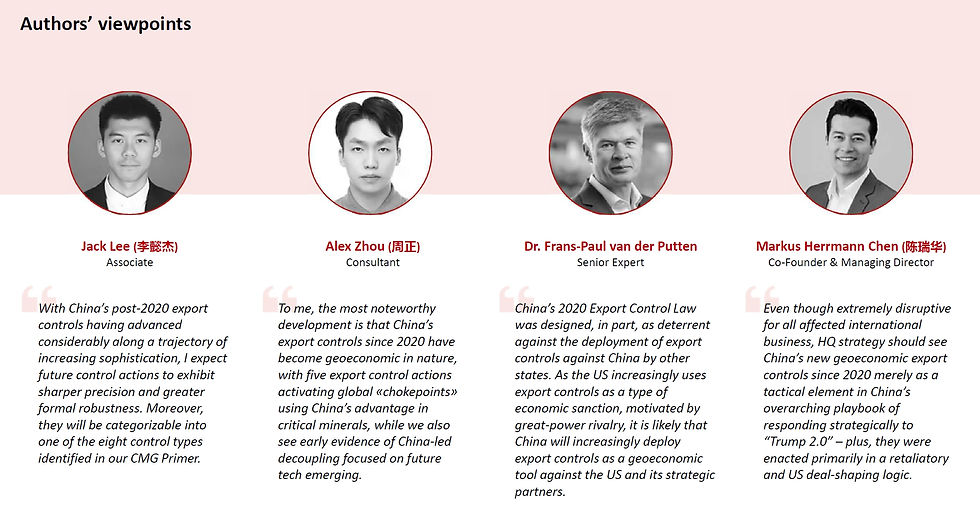 December 2025 | Our newest CMG Primer – titled: “Understanding China’s evolving approach to export controls and implications for international business – from its first export control action in 1997 towards building geoeconomic capacity and power since 2020” – provides a strategic analysis of evolution, intents and typology of China’s evolved export controls, plus it draws strategic implications for international business.